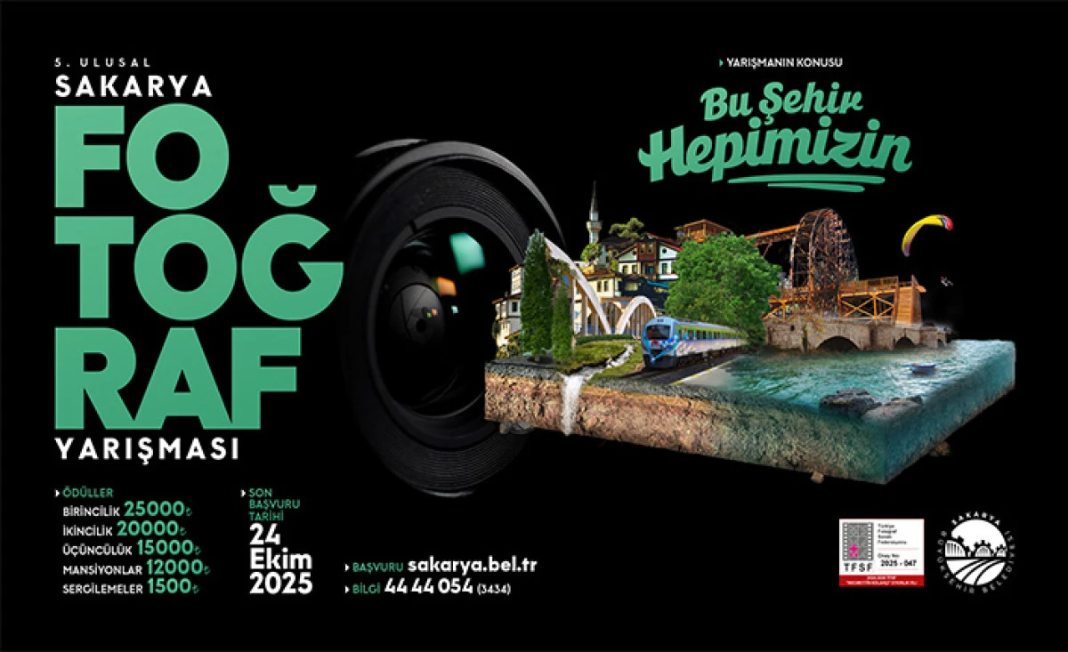 Sakarya Büyükşehir Belediyesi, 5. Ulusal Sakarya Fotoğraf Yarışması’nda şehir aidiyetini, çevre duyarlılığını ve toplumsal dayanışmayı yansıtan kareleri değerlendireceği yarışmada başvurular 24 Ekim Cuma günü sona erecek.
