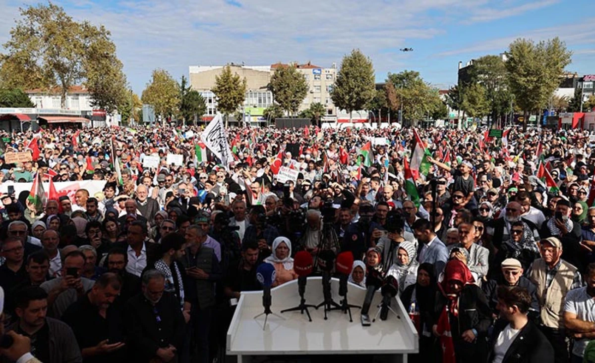 Sakarya Millet Bahçesi'nde bir araya gelen binlerce kişi ellerinde Filistin bayraklarıyla, “Özgür Filistin” ve “Kahrolsun İsrail” gibi sloganlarla şehrin merkezinde yürüdü.