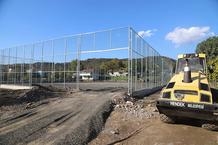 Hendek Belediyesi Fen İşleri Müdürlüğü ekipleri tarafından sürdürülen çalışmalarda saha zemini mıcır dolgu ve kafes tel imalat çalışmaları tamamlanma aşamasına geldi.