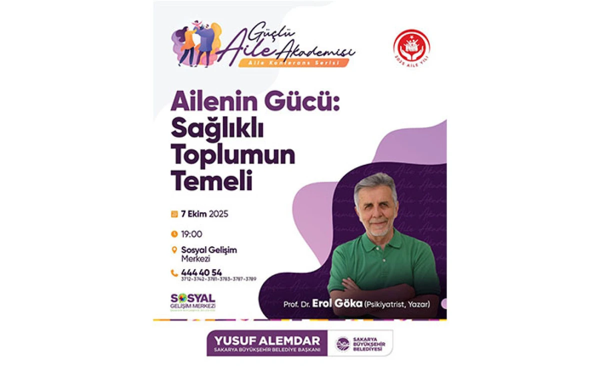 “Ailenin Gücü: Sağlıklı Toplumun Temeli” başlıklı konferansta güçlü aile yapısının birey ve toplum üzerindeki rolü ele alınacak, katılımcılara sağlıklı toplumun vazgeçilmez değerleri anlatılacak.