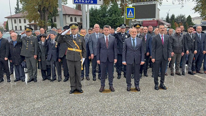 Sağanak yağmur altında gerçekleştirilen törene Hendek Kaymakamı Hacı Hasan Gökpınar, Hendek Beldiye Başkanı İrfan Püsküllü, Hendek Cumhuriyet Savcısı Cihat Arslan, Garnizon Komutanı Mühendis Yarbay Ragıp Tolga Güven, Hendek İlçe Emniyet Müdürü Kemal Aydınoğlu, Hendek İlçe Jandarma Komutanı J. Ütğm. Beytullah Beycur, Siyasi Parti İlçe Başkanları, Kurum ve Daire Müdürleri, Emniyet ve Jandarma Personelleri, Gaziler, Vatandaşlar, Öğretmenler ve Öğrenciler katıldı.