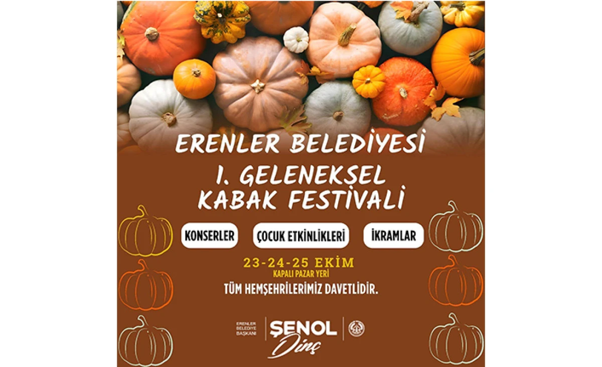 Erenler Belediyesi Kabak Festivali 23-24-25 Ekim tarihlerinde Belediye Kapalı Pazar Yerinde gerçekleşecek. Başkan Şenol Dinç, “Hep birlikte bu heyecanı yaşamak, soframıza ve toprağımıza sahip çıkmak için sizleri ve sevdiklerinizi bu güzel buluşmaya davet ediyorum” dedi.