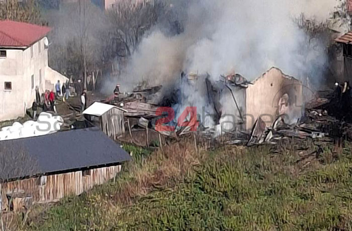 Hendek’te meydana gelen yangın sonucu ev ve samanlık tamamen yanarak kullanılamaz hale geldi.