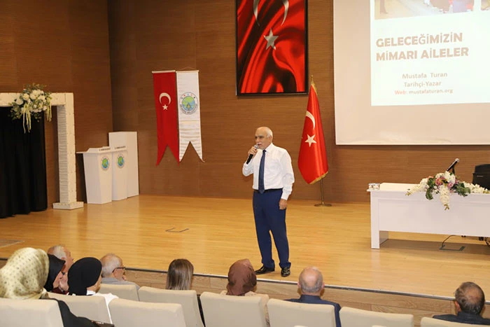 Hendek Belediyesi Nikah ve Toplantı Salonu’nda gerçekleşen programda tarihçi-yazar Mustafa Turan, aile kavramının geçmişten günümüze toplumsal yapının şekillenmesindeki etkilerini anlatarak, sağlam aile temellerinin güçlü bir gelecek için vazgeçilmez olduğunu vurguladı. Konferansta, aile içi iletişim, milli ve manevi değerlerin korunması, çocukların yetiştirilmesinde ebeveynlerin sorumlulukları gibi konular ele alındı. Müftü Sağlam: Aileyi Korumak Hepimizin Görevi