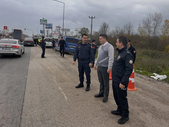 Hendek Kaymakamı Hacı Hasan Gökpınar, D-100 karayolunda Jandarma ekiplerinin gerçekleştirdiği trafik ve asayiş uygulama noktasını ziyaret ederek yürütülen çalışmalar hakkında bilgi aldı.