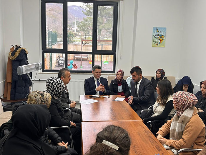 Ziyaret kapsamında okul idarecileri, öğretmen ve veliler ile bir araya gelen Kaymakamımız, okulda yürütülen eğitim faaliyetleri hakkında bilgi aldı.