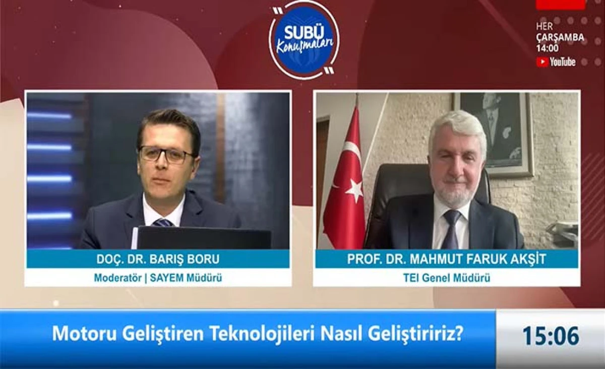 Sakarya Uygulamalı Bilimler Üniversitesi (SUBÜ) tarafından düzenlenen SUBÜ Konuşmaları’nın 105’inci konuşmacısı, 'Motoru Geliştiren Teknolojileri Nasıl Geliştiririz?' başlıklı söyleşiyle TUSAŞ Motor Sanayi A.Ş. (TEI) Genel Müdürü Prof. Dr. Mahmut Faruk Akşit oldu. Moderatörlüğünü Yaşam Boyu Eğitim Uygulama ve Araştırma Merkezi (SAYEM) Müdürü Doç. Dr. Barış Boru'nun üstlendiği söyleşide; savunma sanayiinde teknolojik dönüşüm, yerli motor geliştirme çabaları, geleceğe yönelik planlamalar ve gençlerin mesleki gelişimi gibi konular üzerine konuşuldu.