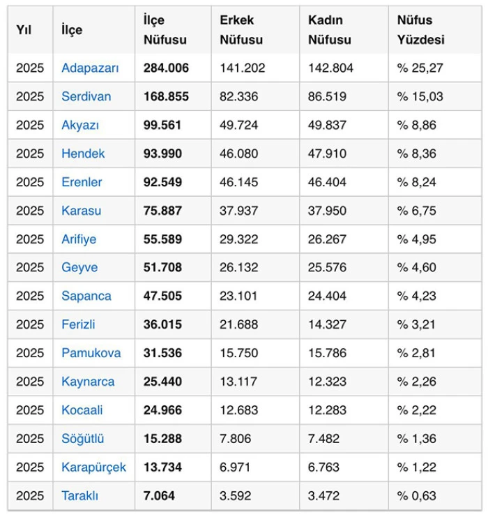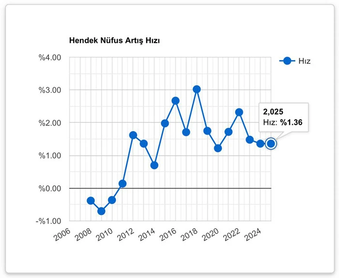 Hendek nüfusu geçen yıla oranla %1,36 artış gösterirken, 93.990 kişilik nüfusu ile Sakarya genelinde en büyük 4. İlçe olarak yer alıyor.