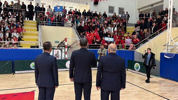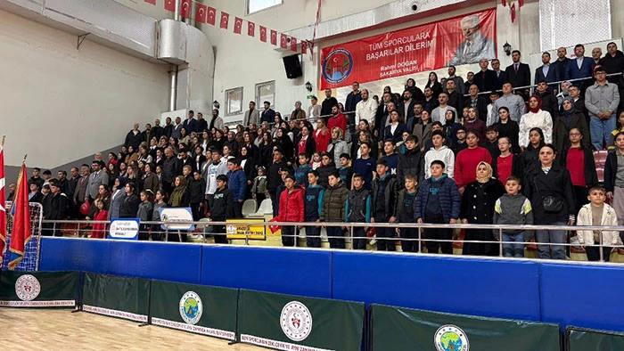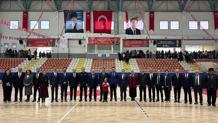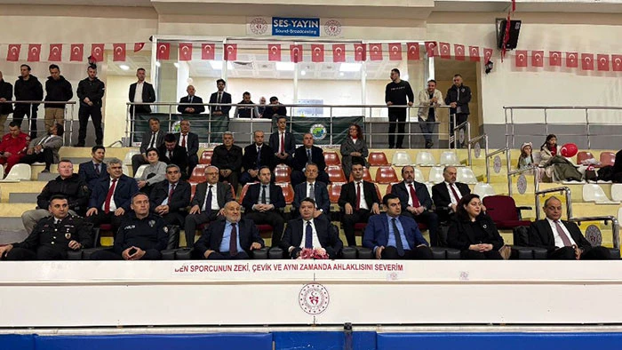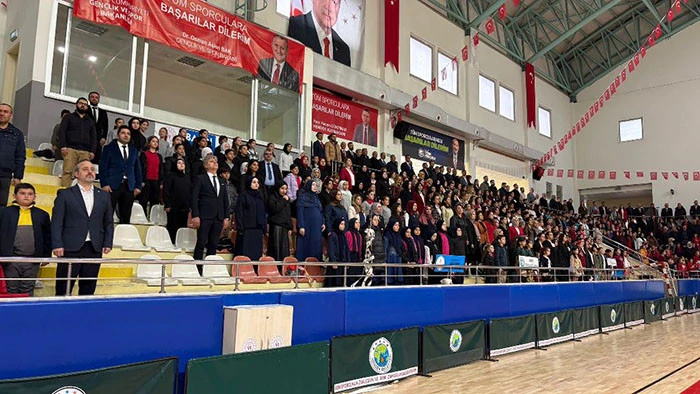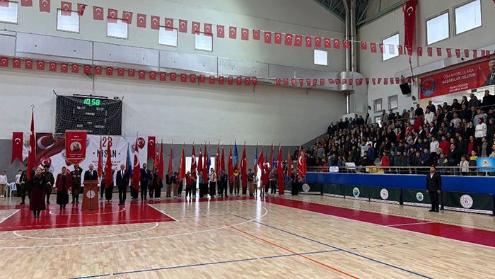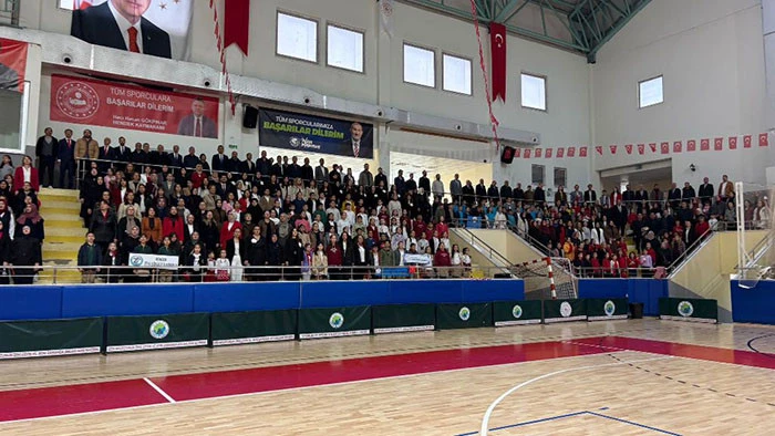 Kapalı Spor Salonunda sade tören