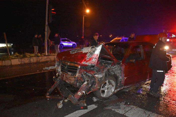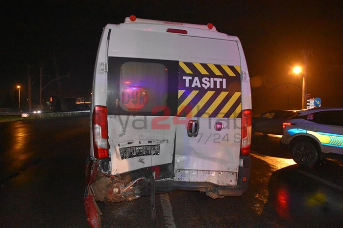 Edinilen bilgilere göre, Hendek’ten Adapazarı istikametine seyir halinde olan 54 KG… plakalı sürücüsü öğrenilemeyen otomobil, Akova Mahallesi ışıklı kavşağında 54 S… plakalı F.Ş. idaresindeki servis minibüsüne çarptı.