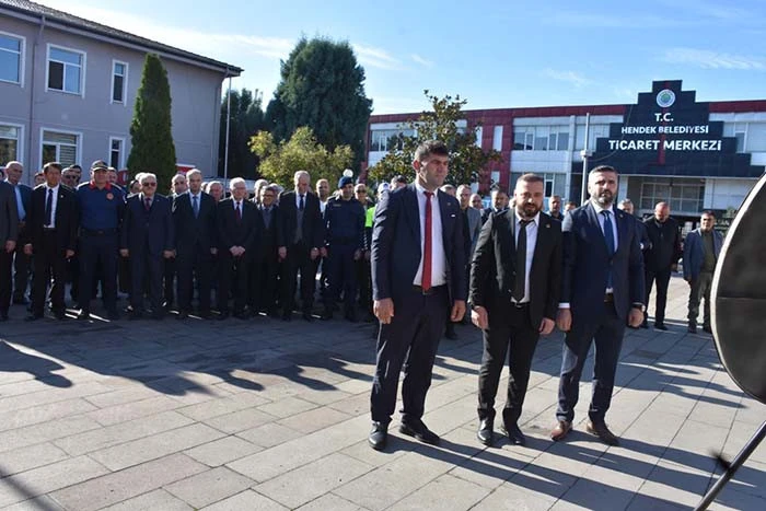 Hendek Kaymakamı Hacı Hasan Gökpınar, Hendek Belediye Başkan Yardımcısı Hasan Altuntaş, İrfan Püsküllü, Vekili Hasan Altuntaş, Ak Parti Hendek Kadın Kolları Başkanı Süeda Keleş, MHP Hendek İlçe Başkanı Burhan Namlı, Yeniden Refah Partisi Hendek İlçe Başkanı Hüdaverdi Bahadır, Kurum Müdürleri, Daire Amirleri ve Muhtarların katıldığı kutlama programı öncesi Hendek Muhtarlar Derneği Başkanı Halit Bektaş ve Muhtarlar tarafından Atatürk anıtına Muhtarlar Derneği adına çelenk sunulmasının ardından saygı duruşu ve istiklal marşı okundu.