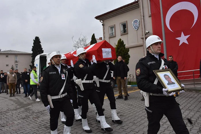 Polis Memuru Umut Sıbıç, görev yaptığı Hendek Emniyet Müdürlüğünden son yolculuğuna uğurlandı.