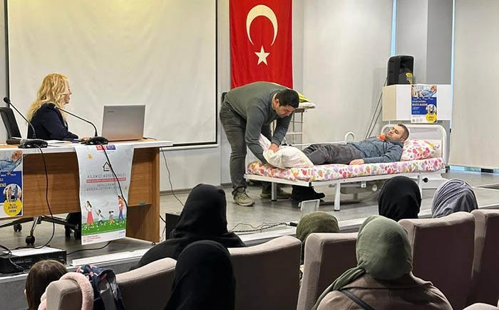 Eğitim programında; hasta bakımı sağlayanların görev ve sorumlulukları, hasta güvenliği ve etik ilkeler, enfeksiyon kontrolü ve hijyen uygulamaları, hasta ile doğru iletişim, pozisyon verme teknikleri ve yatak içi egzersizler, bası yaralarının önlenmesi, kateter ve sonda bakımı, komplikasyonların erken fark edilmesi, yatağa bağımlı hastada beslenme ve aspirasyon riskinin önlenmesi ve evde bakım sürecinde acil durum yönetimi gibi bakım sürecinin tüm aşamalarını kapsayan konularda kapsamlı eğitimler verildi.