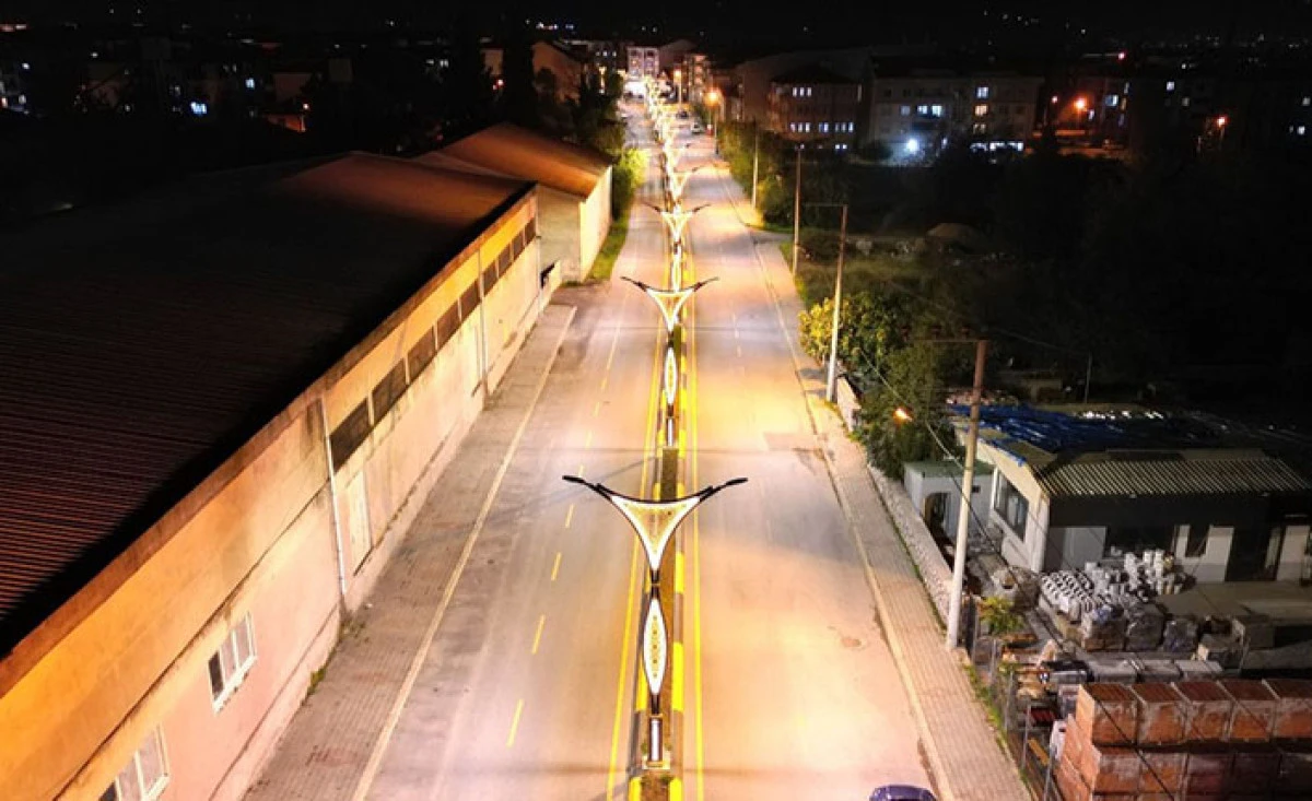 İlçenin önemli arterlerinden biri olan cadde, artık akşam saatlerinde yepyeni bir görünüme kavuştu.