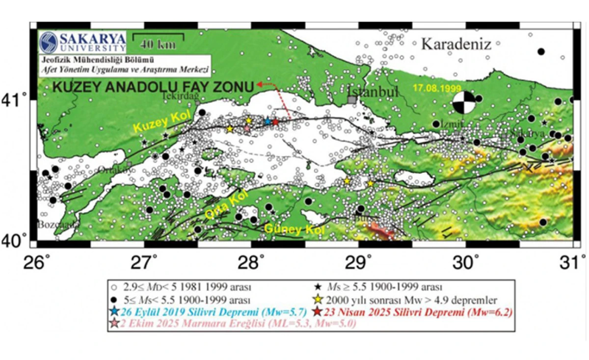 Sakarya Üniversitesi Jeofizik Mühendisliği Bölümü ile Afet Yönetim Uygulama ve Araştırma Merkezi, 2 Ekim tarihinde Marmara Ereğlisi açıklarında meydana gelen 5.0 büyüklüğündeki depremle ilgili bir değerlendirme raporu yayımladı. Sakarya Üniversitesi uzmanları, depremin Kuzey Anadolu Fay Zonu’nun (KAFZ) kuzey kolu üzerinde, Marmara Denizi altındaki Ana Marmara Fayı yakınında meydana geldiğini belirtti.