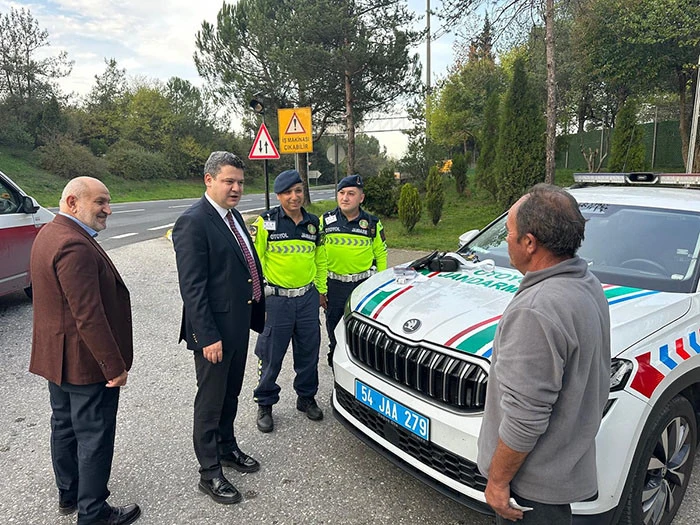 Hendek Otoyol gişelerinde Jandarma ekipleri tarafından yürütülen güvenlik uygulamalarını da inceleyen Başkan Püsküllü ve Kaymakam Gökpınar, ilçeye giriş–çıkışlarda yapılan denetimler ve vatandaş güvenliğine yönelik tedbirler hakkında ekiplerden bilgi aldı.