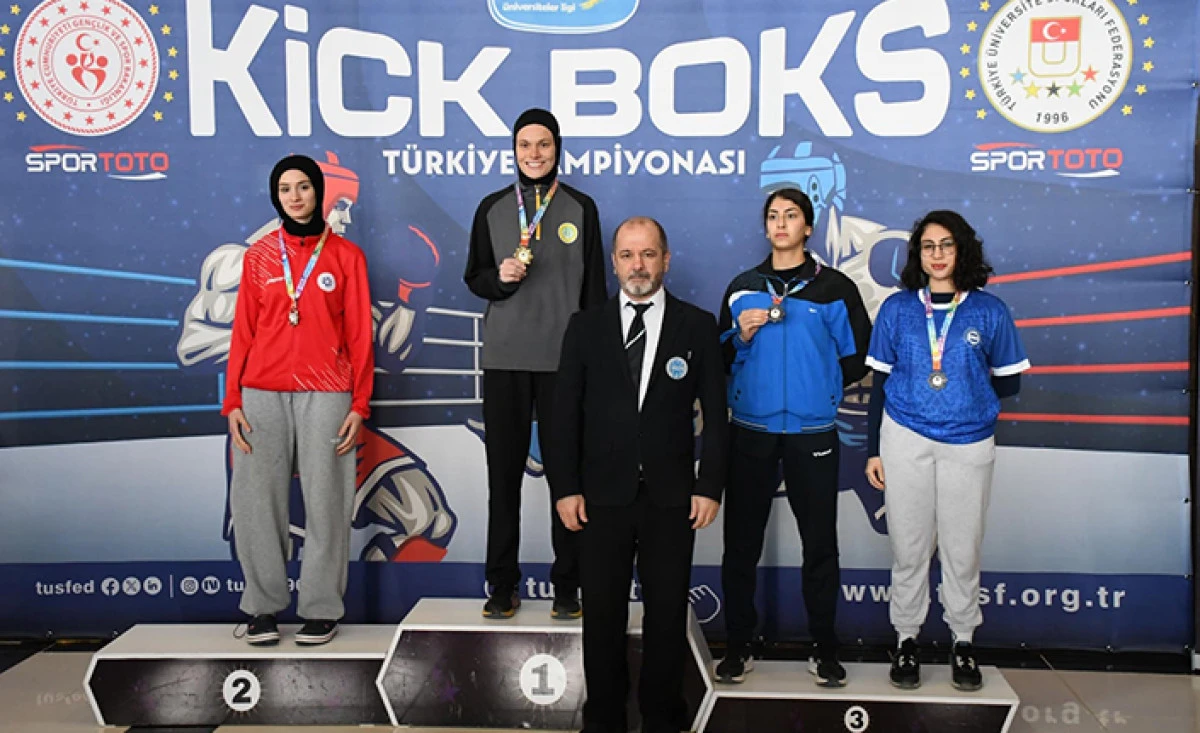 Burdur Mehmet Akif Ersoy Üniversitesi ev sahipliğinde gerçekleştirilen Üniversiteler Türkiye Kick Boks Şampiyonası’nda Büyükşehir’in milli sporcusu Ayşe Kaplan, sergilediği üstün performansla tüm rakiplerini geride bırakarak Türkiye Şampiyonu oldu. Turnuva boyunca disiplinli oyunu ve mücadele gücüyle dikkat çeken Kaplan, finalde de hata yapmayarak altın madalyaya uzandı.