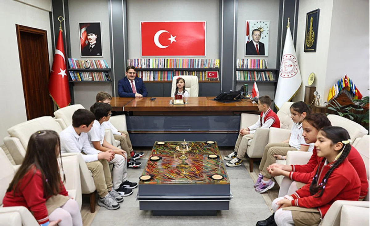 Ziyaret sırasında 4-D sınıfı öğrencisi Zeynep Erva Alkış, 23 Nisan dolayısıyla temsili olarak İl Millî Eğitim Müdürü koltuğuna oturdu. Günün anlam ve önemine uygun olarak gerçekleştirilen temsili devir teslim, renkli ve gurur verici anlara sahne oldu.