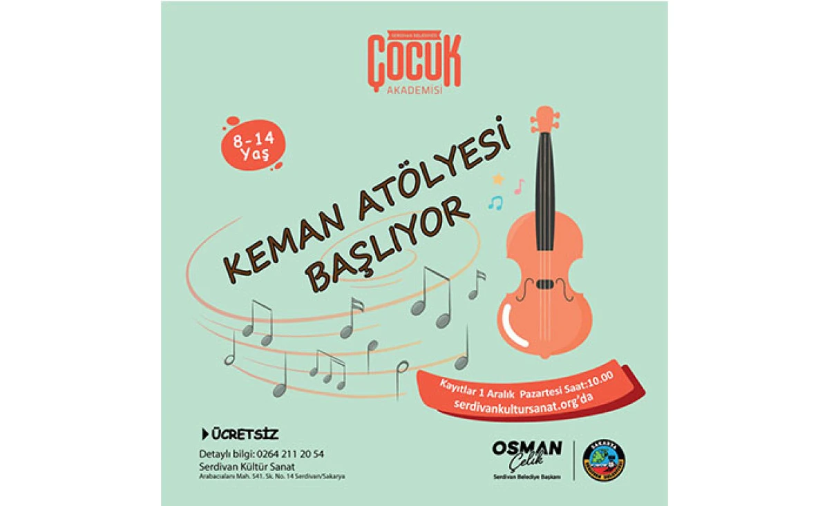 Kontenjanların sınırlı olduğu atölyelere kayıt yaptırmak ve nitelikli eğitimlerden faydalanmak isteyen veliler için kayıt süreci dijital ortamda, hızlı ve erişilebilir bir şekilde yürütülüyor. Çocuklarının gelişimine katkı sağlamak isteyen aileler, kayıt işlemlerini her pazartesi günü saat 10.00 itibarıyla serdivankultursanat.org adresi üzerinden gerçekleştirebilir.
