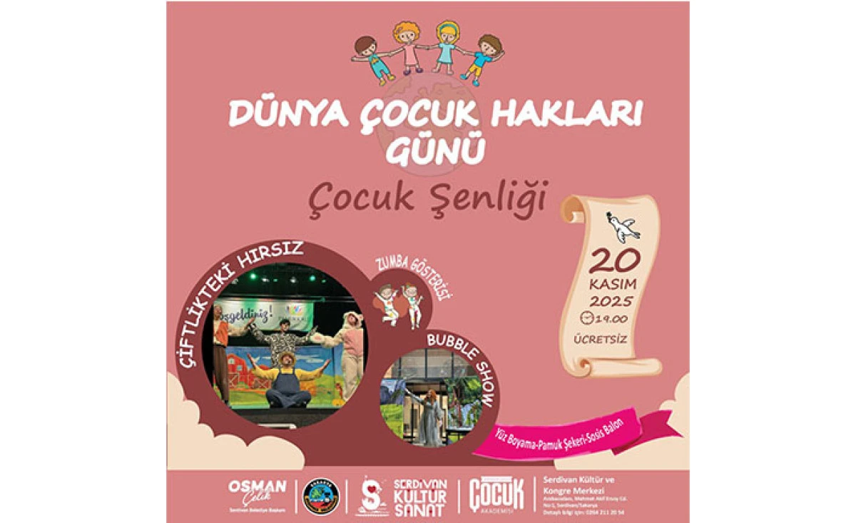 Serdivan Belediyesi, 20 Kasım Dünya Çocuk Hakları Günü kapsamında çocuklara özel tiyatro gösterilerinden zumba şovlarına kadar pek çok etkinliğin yer aldığı ücretsiz bir şenlik düzenliyor.