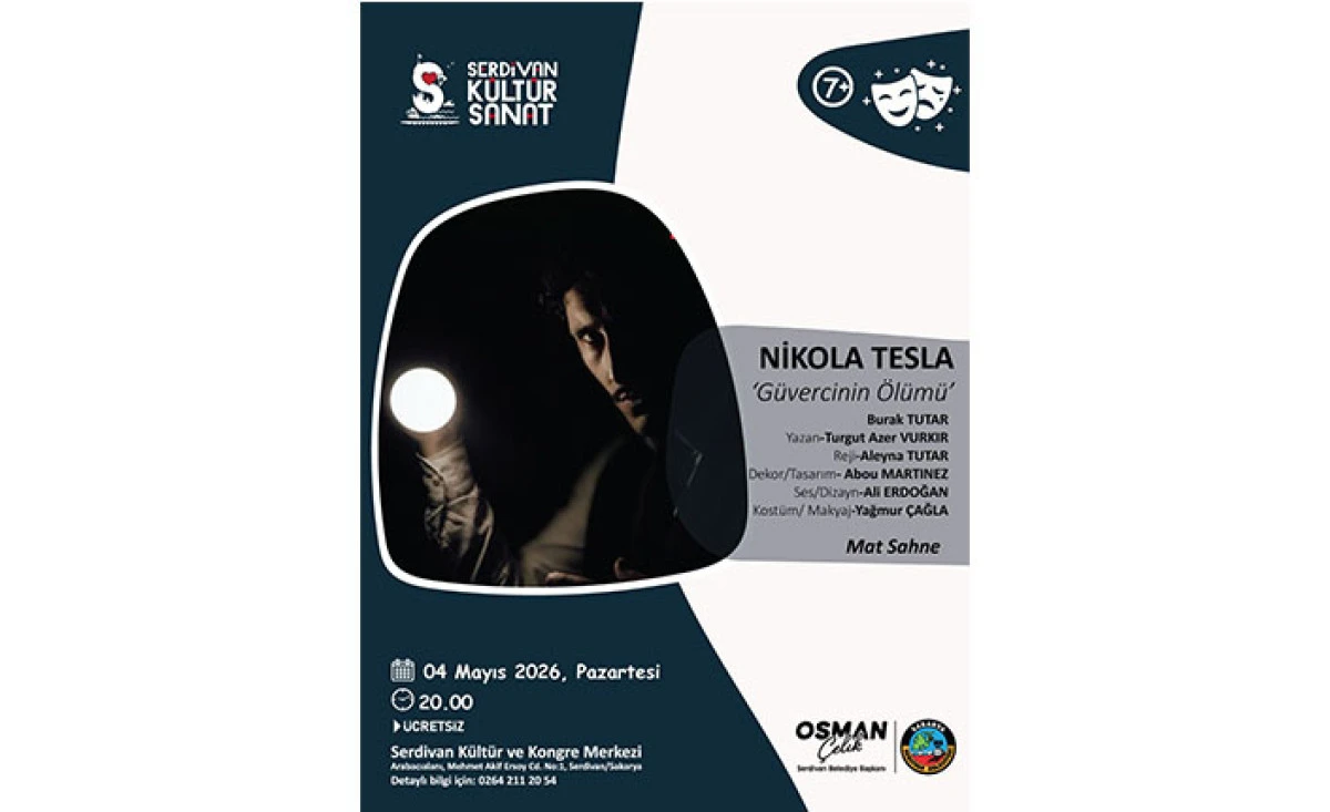 Nikola Tesla’dan ilhamla sahneye taşınan “Güvercinin Ölümü” adlı tiyatro oyunu, Serdivan’da sanatseverlerle buluşuyor.