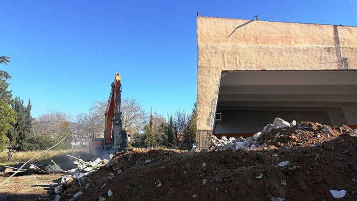 11 Ocak’ta yıkım çalışmaları başlatılan Hendek Anadolu Lisesi’nin ardından çalışmaların devam ettiği alanda bulunan Spor Salonunun yıkım çalışmaları başlatıldı.