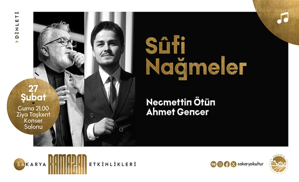 Bu kapsamda 27 Şubat Cuma günü, “Sufi Nağmeler” programıyla müzikseverleri huzurlu bir akşam bekliyor.