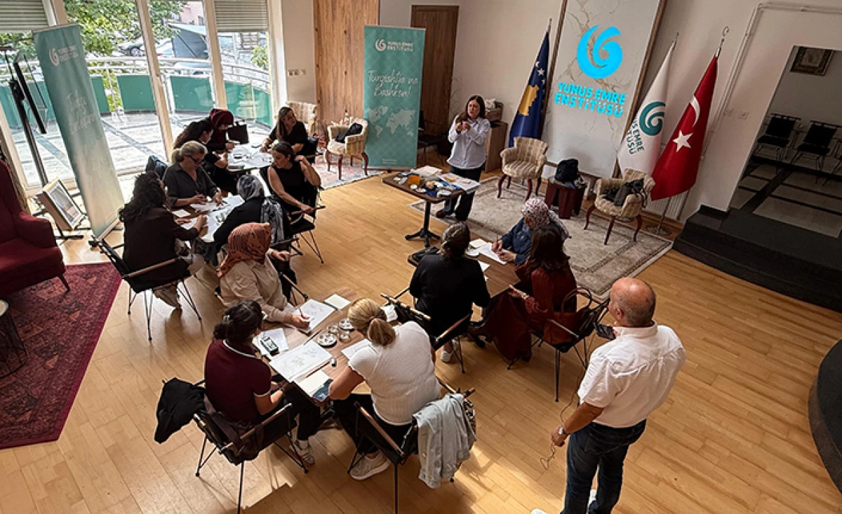 Sanatçı ayrıca, 25 Eylül’de Priştine Yunus Emre Enstitüsünde bir tezhip atölyesi (workshop) düzenledi. Dört saat süren etkinlikte katılımcılar, kendilerine verilen natüralist üsluptaki üç tasarımdan birini seçerek kağıda aktardı ve renklendirdi. Doç. Hülya Doğru, atölye boyunca tezhip sanatının inceliklerini anlatarak, katılımcılarla birebir ilgilendi.