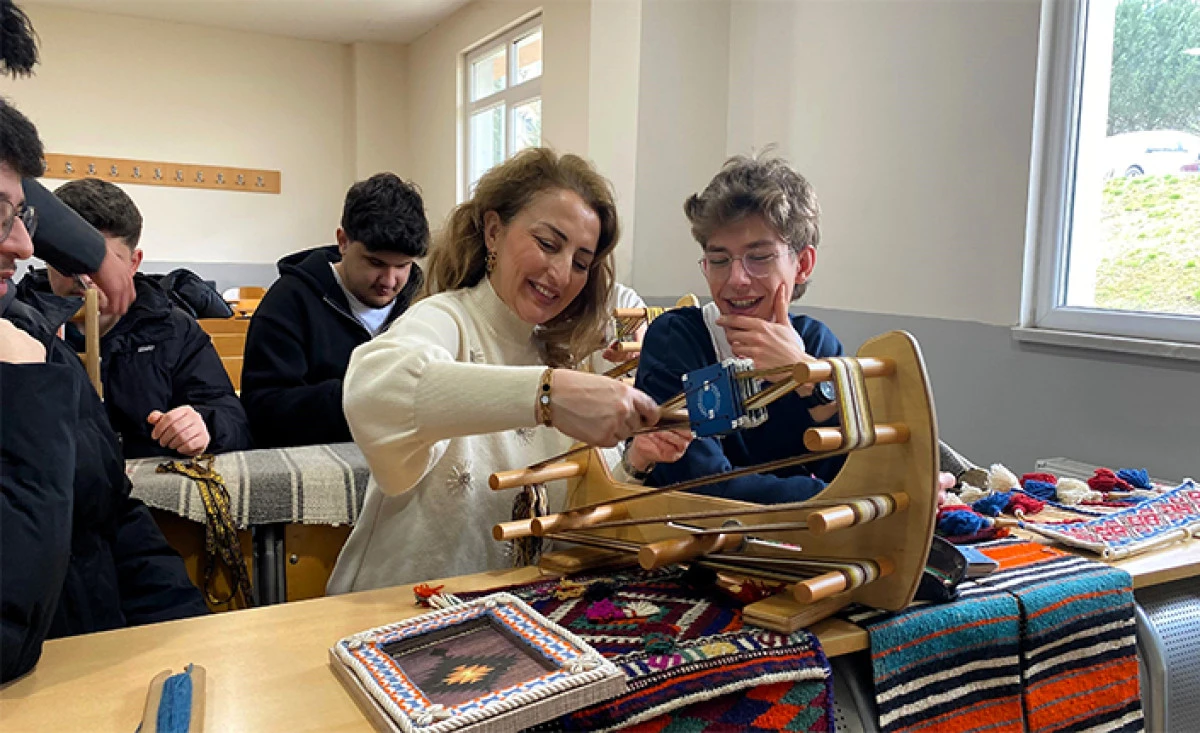 Bu motiflerin estetik unsurların ötesinde kültürel bir anlatım dili oluşturduğu vurgulandı. Atölye kapsamında çarpana dokuma tekniği uygulamalı olarak gösterildi. Öğrenciler mekik, kirkit, çözgü ve atkı gibi temel kavramları yerinde gözlemleyerek üretim sürecine katılım sağladı.