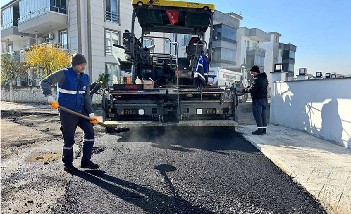 Ekipler tarafından yürütülen çalışmalarda, 4471. Sokak’ta trimer çalışmaları devam ederken, aynı zamanda asfalt serimi de gerçekleştirildi.