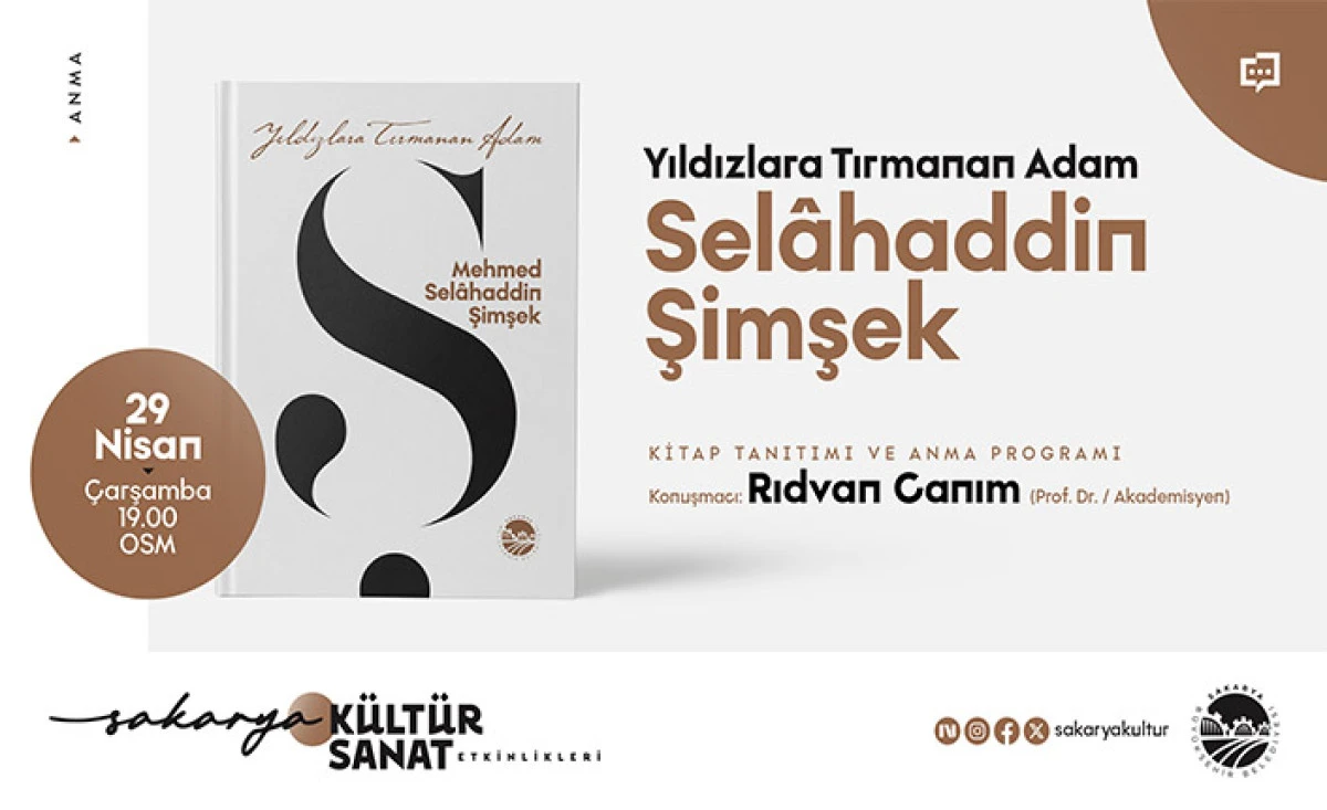 Ofis Sanat Merkezi’nde düzenlenecek “Yıldızlara Tırmanan Adam: Selahaddin Şimşek” adlı program saat 19.00’da başlayacak. Prof. Dr. Rıdvan Canım’ın konuşmacı olarak katılacağı programda hem kitap tanıtımı yapılacak hem de anma programı düzenlenecek. Prof. Dr. Canım hem esere dair değerlendirmelerde bulunacak hem de Şimşek’in kültür ve edebiyat dünyasına bıraktığı izleri aktaracak.