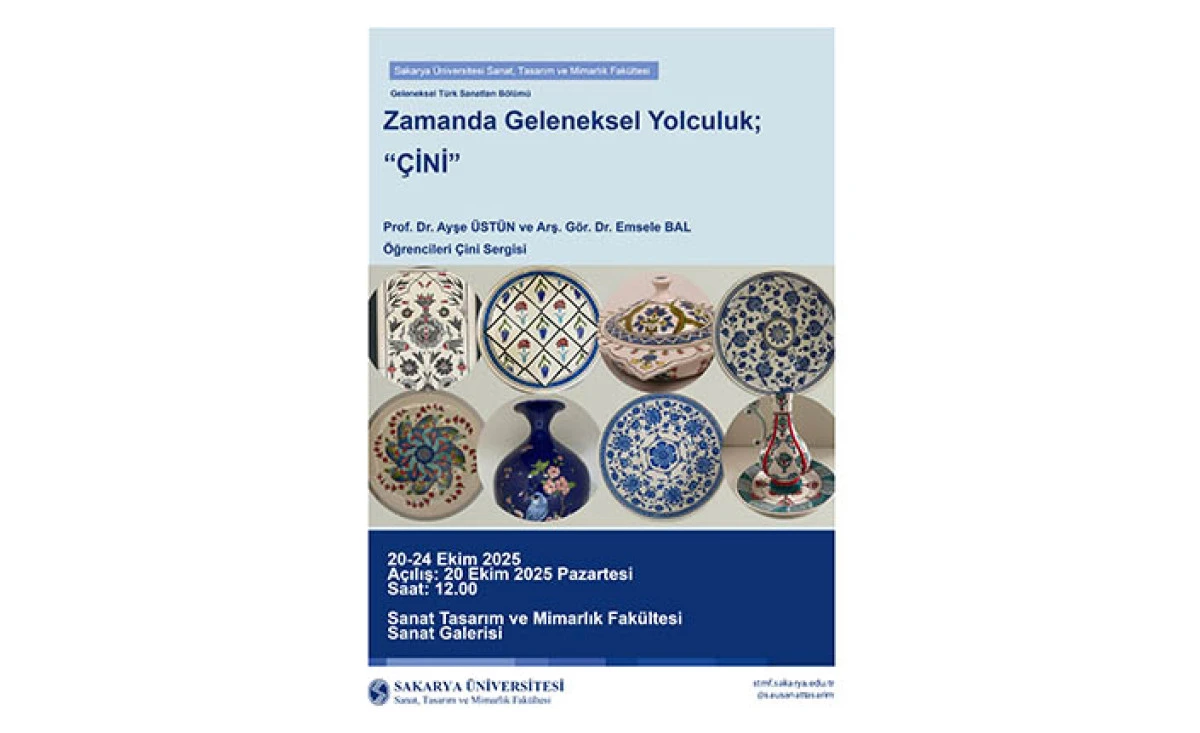Prof. Dr. Ayşe Üstün ve Arş. Gör. Dr. Emsele Bal koordinatörlüğünde hazırlanan “Zamanda Geleneksel Yolculuk: Çini” başlıklı sergide, geleneksel sanat anlayışıyla şekillendirilmiş çeşitli çini panolar ve evaniler yer alıyor. Öğrencilerden Berra Yıldız, Ebru Altan, Kübra Acar, Melek İrdem, Nuray Arslan, Nuray Kalay ve Serap Akgöl Aydın’ın çalışmalarından oluşan sergi, çini sanatının tarihsel birikimini çağdaş tasarım yaklaşımıyla yeniden yorumlayarak izleyiciyle buluşturmayı amaçlıyor.