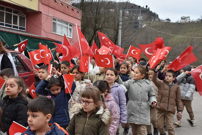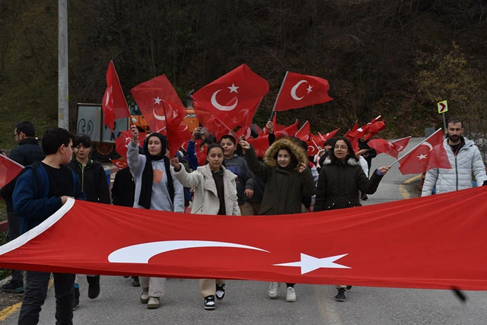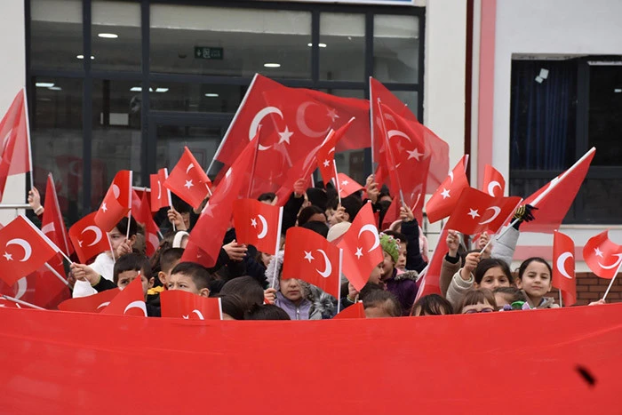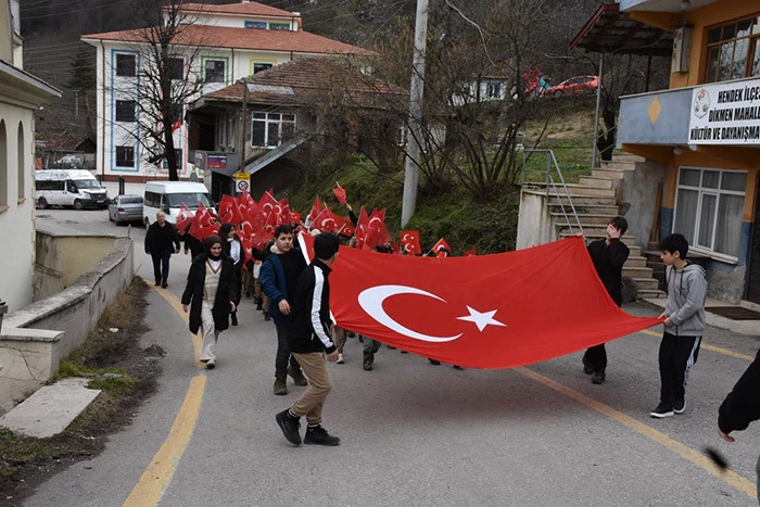 Hendek Dikmen Mahallesinde Öğrenciler, Veliler ve Vatandaşlardan Bayrak yürüyüşü.