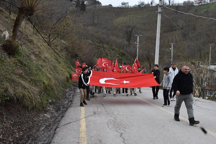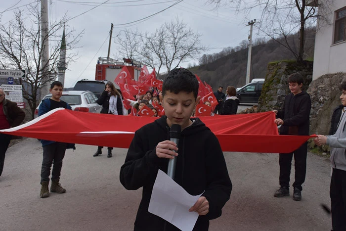 Köy meydanında İstiklal Marşı ve Gürkan Kaan Ark isimli Öğrenci tarafından Arif Nihat Asya'nın Bayrak şiirinin okunmasının ardından tekrar Bayrak Yürüyüşü ile okula geri dönülmüştür.