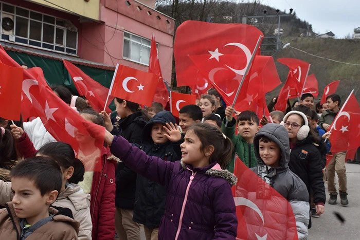 Hendek Dikmen Mahallesi İlk ve Ortaokulu Öğrencilerinin Bayrak sevgisine Veliler ve Köy halkından destek.
